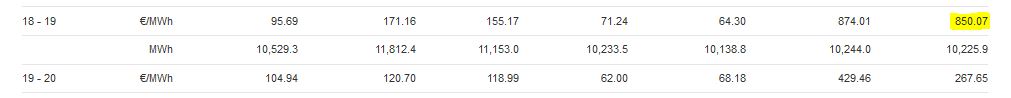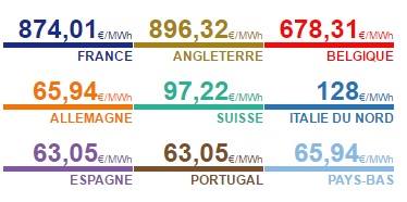 Un prix de 850 €/MWh pour la France en heure de pointe, soit 8 €/MWh de moins que hier.
