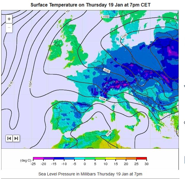Le premier jour de la semaine de tous les dangers au niveau du réseau électrique européen, dangers liés à une possible pénurie d’électricité qui risque de se créer en certains endroits d’Europe. Tout d’abord, un petit positionnement de la situation: une vague de froid nous arrive de Sibérie et va englober l’Europe dans sa quasi totalité.