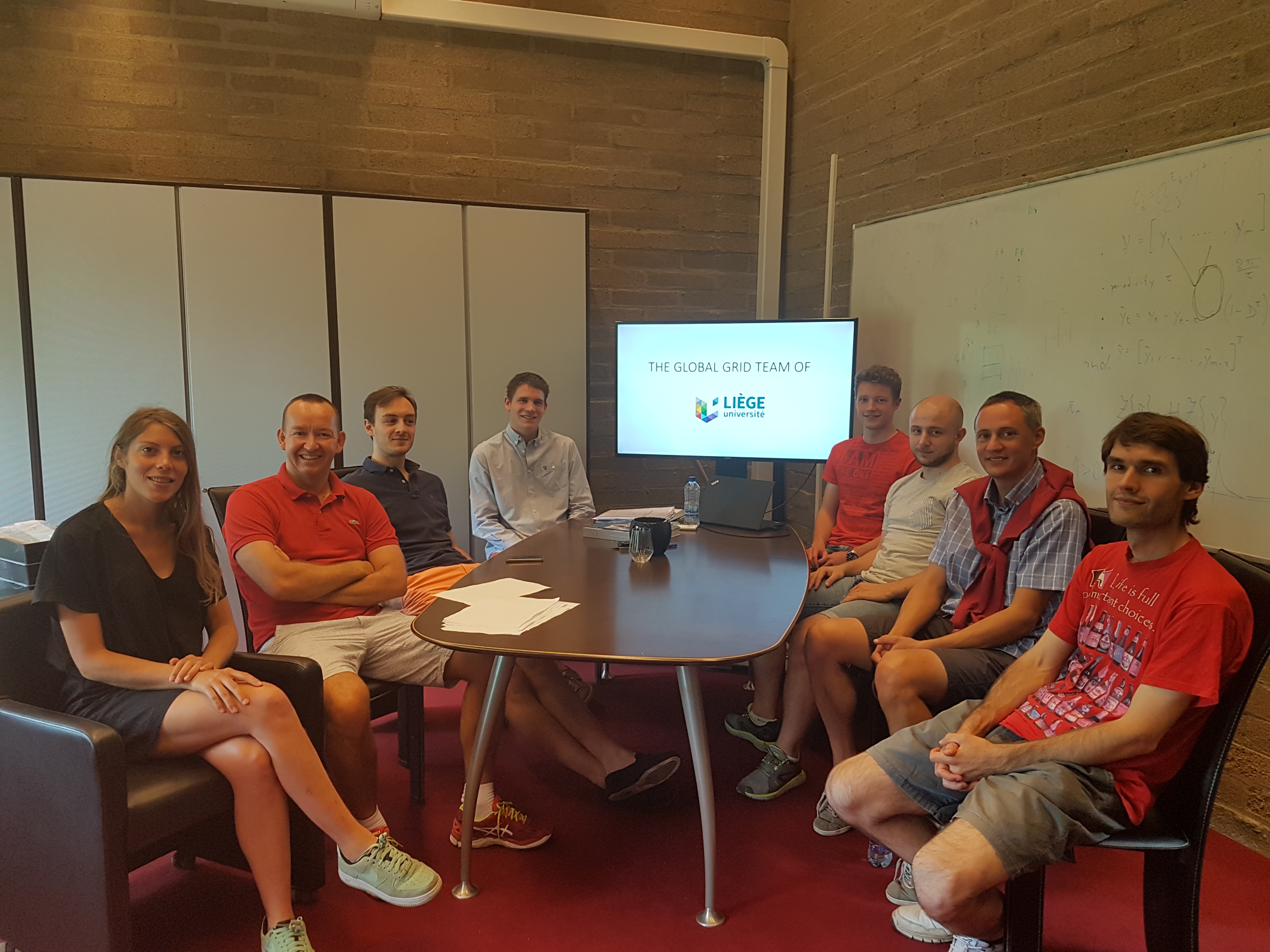 The Global Grid (G2) team of the ULiège in the summer 2018. For left to right: Fanny Vanrykel, Damien Ernst, Mathias Berger, Simon Hardy, Robin Henry, David Radu,  Xavier Fettweis and Raphael Fonteneau.
