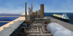 Illustration d’un hub gazier où du gaz synthétique est fabriqué à partir d’énergie renouvelable.