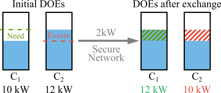 Every home or business connected to the grid receives DOEs, intervals indicating the amount of power they can inject or withdraw without stressing the network. This means that wherever the withdrawal/injection is inside the limits, then the network is secure. But instead of being fixed, these envelopes can be traded in a market.